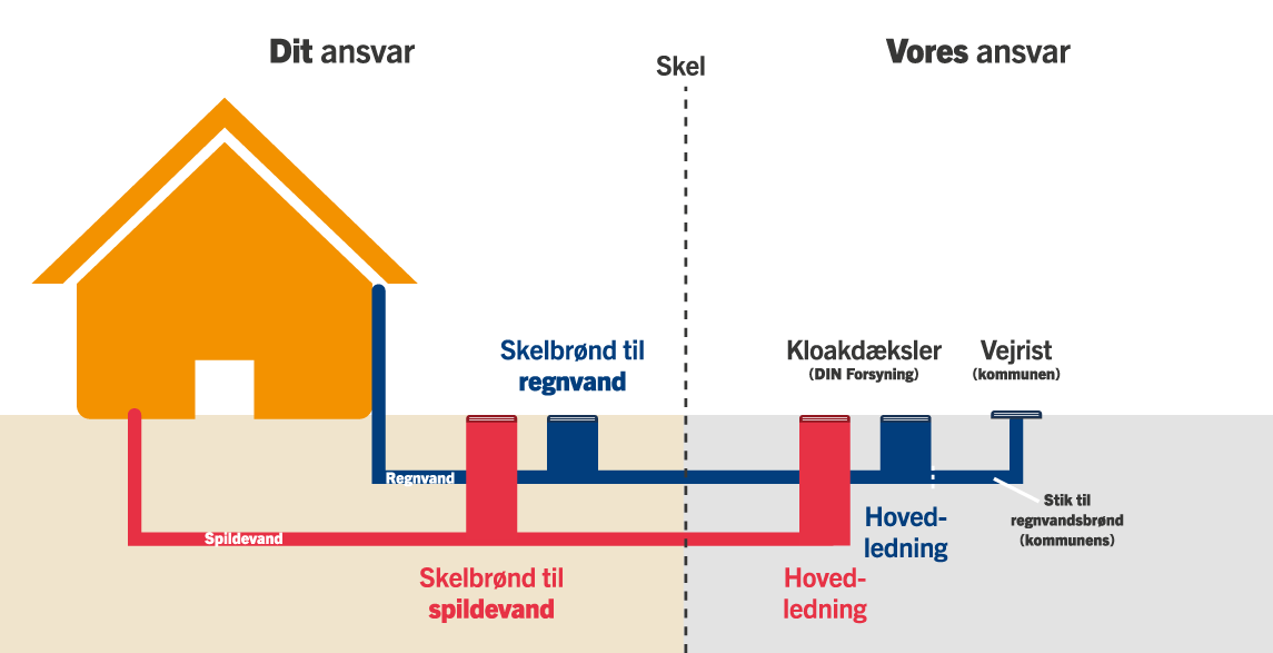 Det betyder, at du selv skal sørge for, at kloakken på din grund er tæt, er koblet korrekt på stikledningerne fra vejen, og at din kælder er sikret mod oversvømmelser.