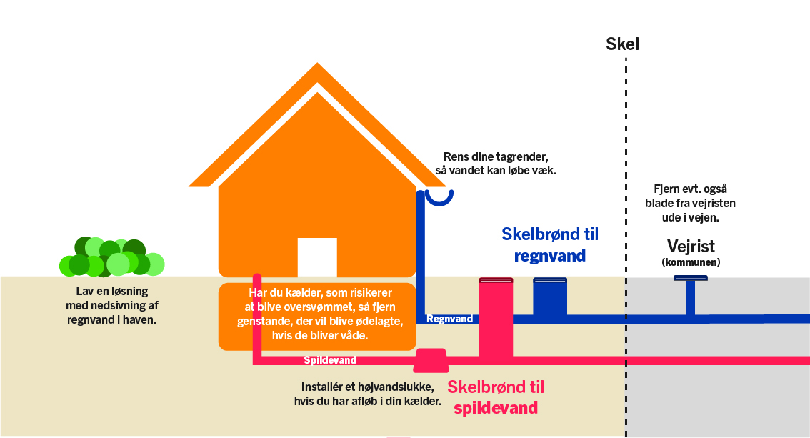 Som grundejer har du selv ansvaret for at sikre din kælder mod oversvømmelser. Vi anbefaler, at du installerer et højvandslukke, som kan hjælpe dig med at forhindre, at du får vand i din kælder, når der falder meget regn.