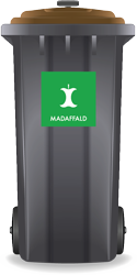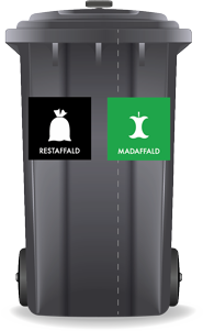 Tømmes sammen med rest- og madaffaldsspanden i standardsetup