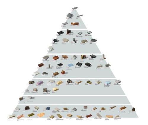 Til den bygning, der trods alt bliver opført, er alle materialerne blevet målt ud fra materialepyramiden, hvilket har betydet, at træ har fået hovedrollen.