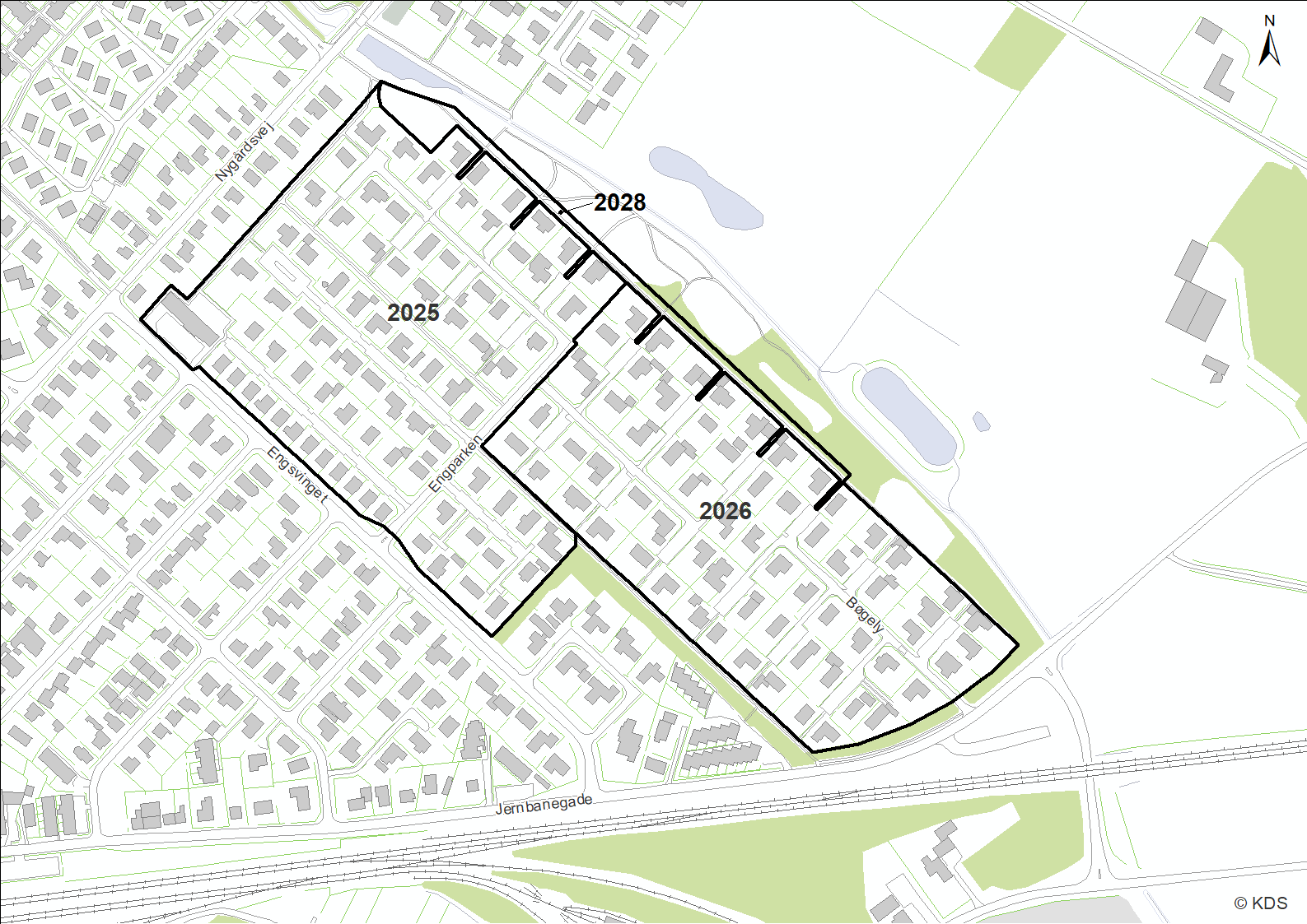Kloaksepareringen af Engparken og Bøgely er inddelt i tre etaper; Den første i 2025, en i 2026 og så en afsluttende etape i 2028.